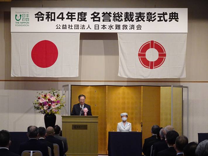 斉藤大臣は、祝辞の中で、名誉総裁表彰を受章した方々を始め、海難救助活動や洋上救急活動に貢献された方々の功績をたたえました。