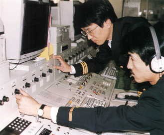 ![]() <海上保安官正在进行遇险通信> |