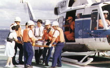 航行在远洋的船舶上的船员受伤或者得病,船东或其他人请求紧急医疗援助时,海上保安厅派出配有医生、护士的巡逻船艇或巡逻飞机前往现场,进行迅速有效的医疗援助。 |
