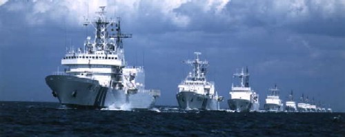 ![]() <参加海上保安厅观阅典礼的巡逻船编队> |