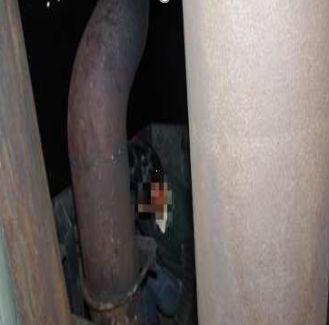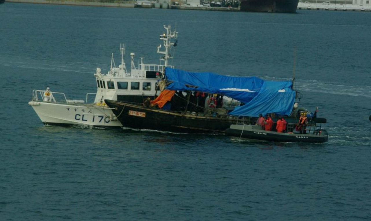 | ・木造漂着船への立入検査 | ・船内煙突部に潜んでいた密航者 |