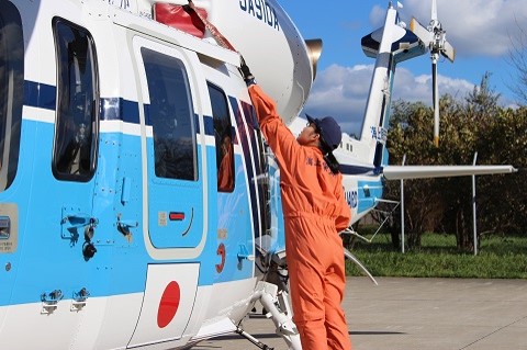 函館航空基地の飛行科職員として、航空局への申請、空港や自衛隊との調整を行い、飛行中は副操縦員として管制との無線交信、機器の操作、計器や外部の監視など、機長のサポートをしています。