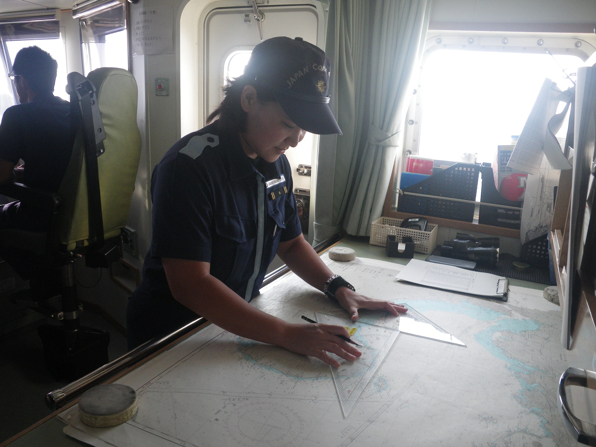 また、英語捜査官として外国船舶への立入検査、外国人が関わる事件の捜査や外国人船員の急患輸送などの業務にも従事しています。
