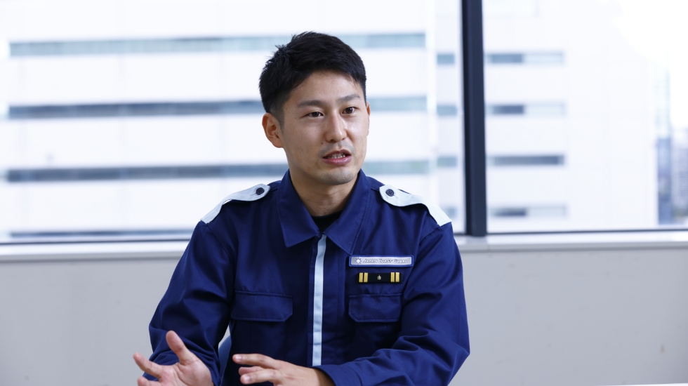 海上保安⼤学校卒業⽣の特別対談です。
