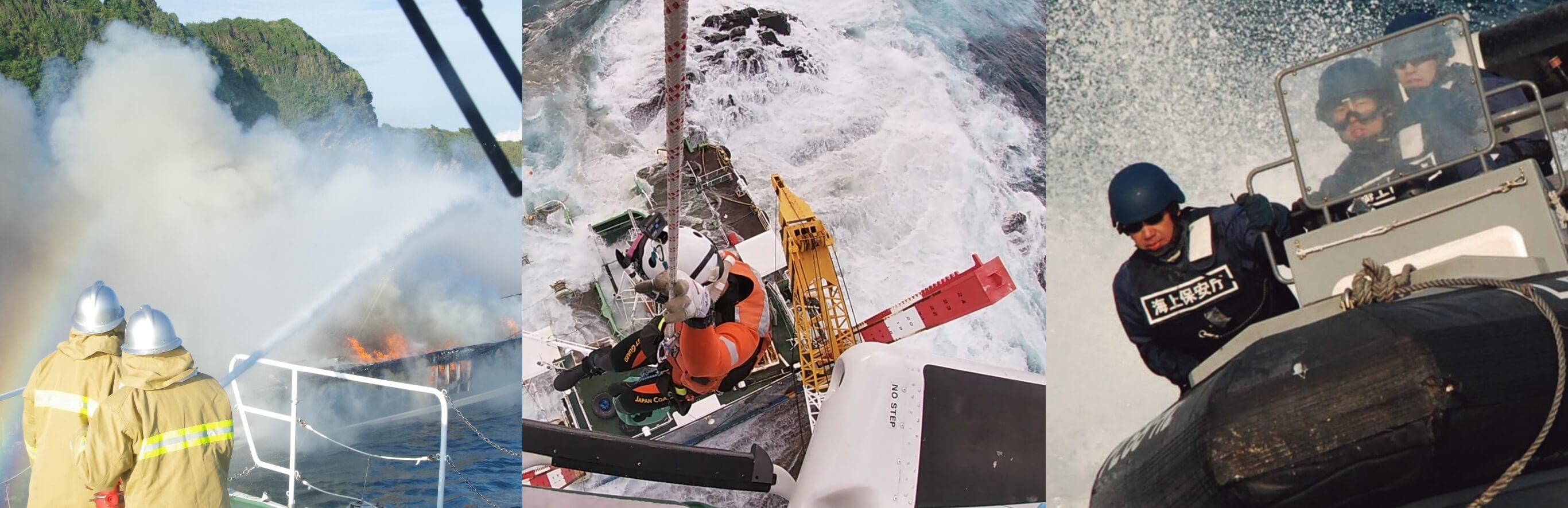 海上保安庁は、国⼟交通省(旧運輸省)の外局として1948年に発⾜しました。以来、海上や沿岸における犯罪の取り締まり、領海警備、海難救助、環境保全、災害対応、海洋調査、船舶の航⾏安全などに取り組んでいます。いわゆる海上での”警察”や”消防”に加え、海洋調査や海上交通安全の役割を担っています。