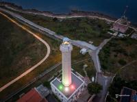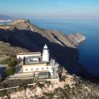 1863年に建てられた、高さ222メートルの地中海で最も高い灯台。建物は長方形で白色であり、角と窓枠は黄土色で塗られている。 |