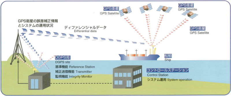 ディファレンシャルGPSは、中波帯の電波を使って、米国が運用するGPSの精度が1m以下となるような補正値を提供し、併せてGPS衛星の故障等、システムの運用状況等のインテグリティ情報を直接ユーザー受信機に伝える機能を有し、その規格は世界共通となっています。 |